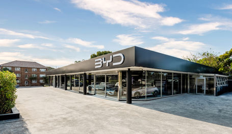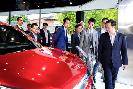 BYD Harberfield grand opening with CEO Wang Chuanfu visiting flagship store.